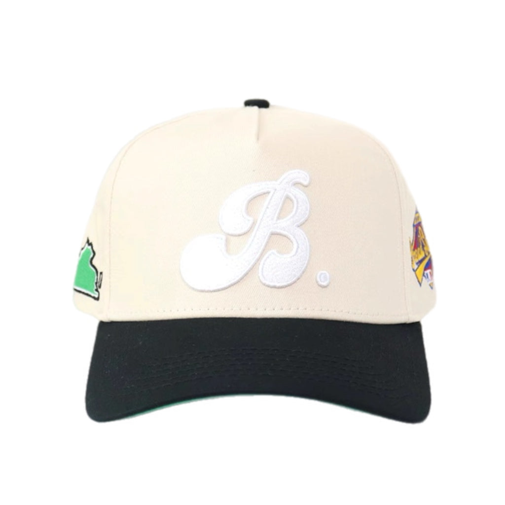 This premium cap blends heritage detail with bold street-ready design. Featuring a raised 3D puff-embroidered ‘B.’ logo on the front, custom patchwork on both side panels, and interior taping branded with Bradley Bread Clothing.